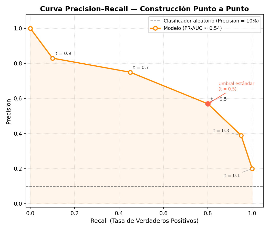 En el Capítulo 2 introdujimos la Matriz de Confusión y las métricas derivadas: Accuracy, Precision, Recall y F1-Score. También presentamos la Curva ROC como herramienta de evaluación visual. Ese capítulo nos equipó con el vocabulario esencial.
