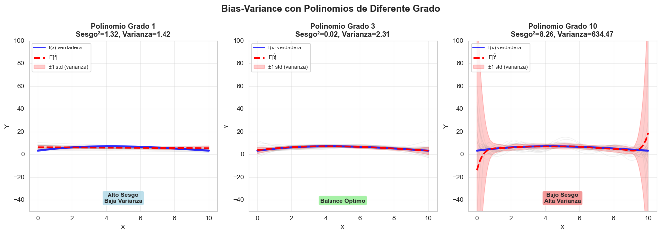 Bias-Variance con Regresiones Polinomiales