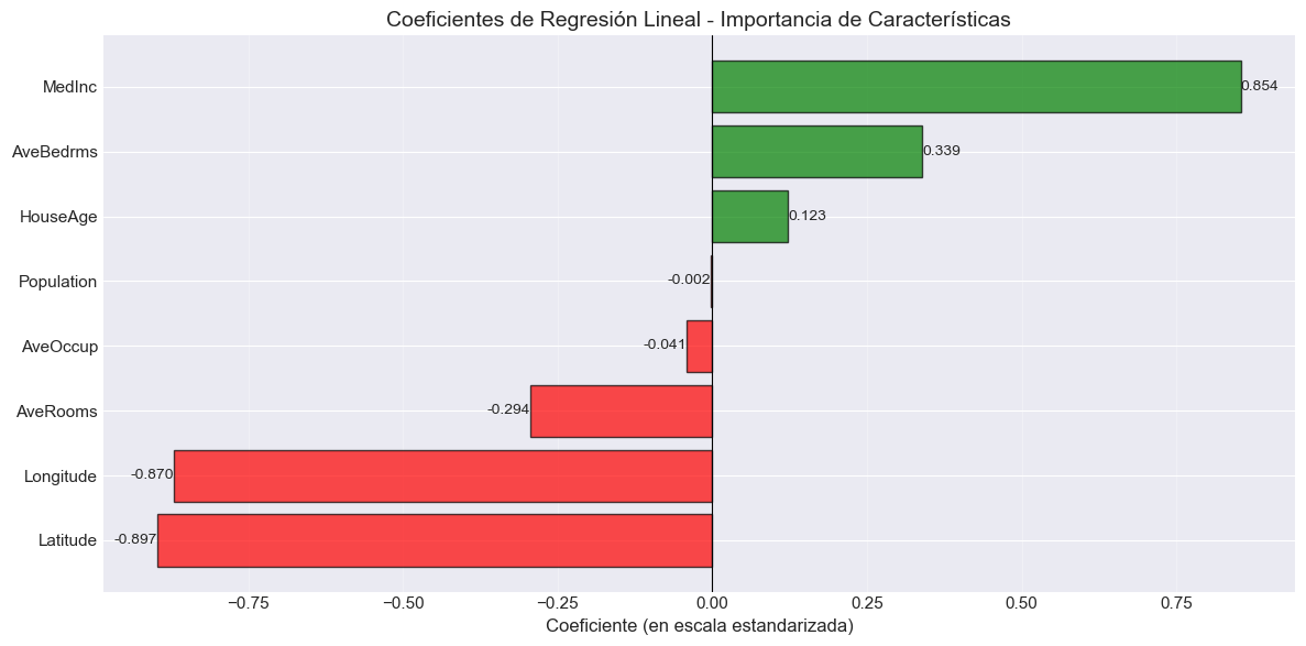 Regresión: Estamos prediciendo una variable continua (precio de vivienda) a partir de múltiples características.
