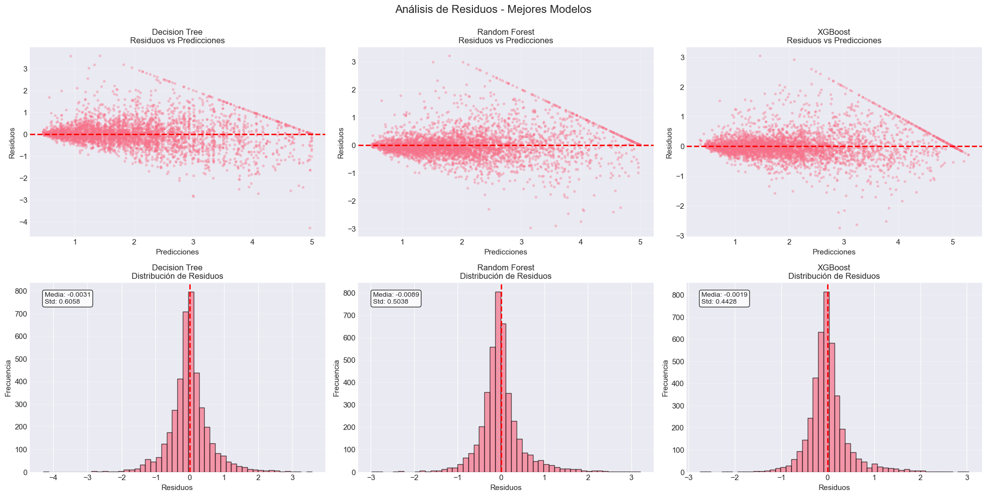Conclusión: Ambos modelos ensemble exceden ampliamente los objetivos de negocio en las métricas principales (RMSE, R², MAE). El MAPE ligeramente superior a 15% es aceptable dado el excelente rendimiento en otras métricas.