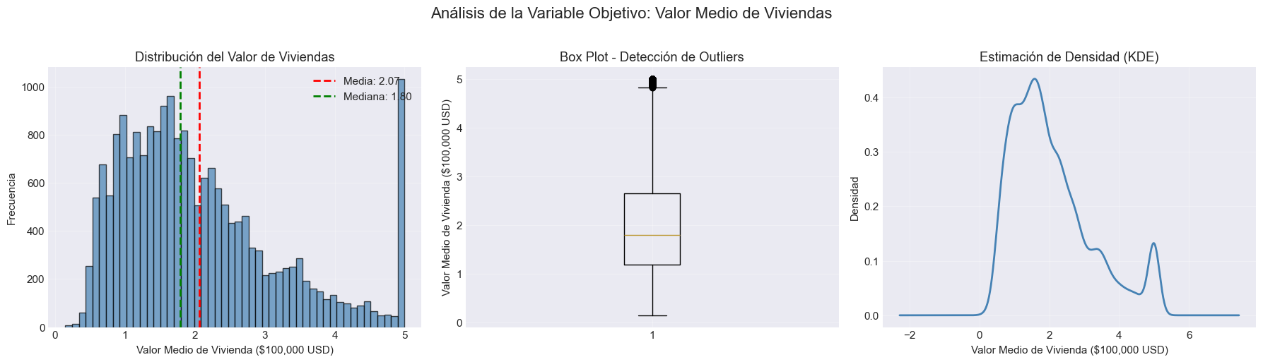 MedHouseVal: Valor medio de las viviendas (en $100,000 USD)